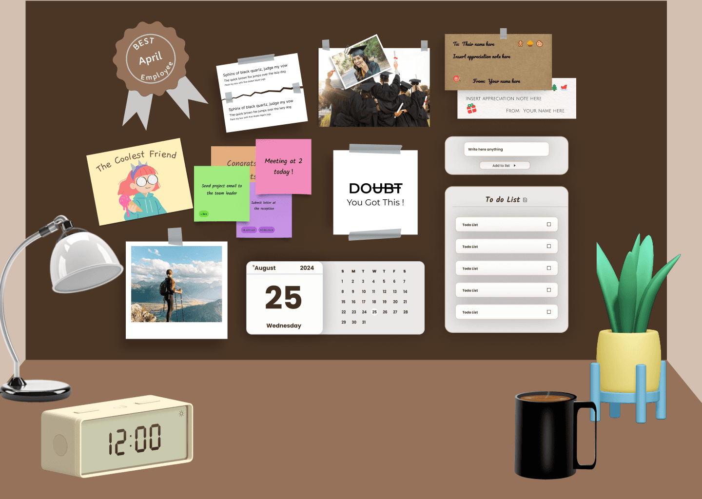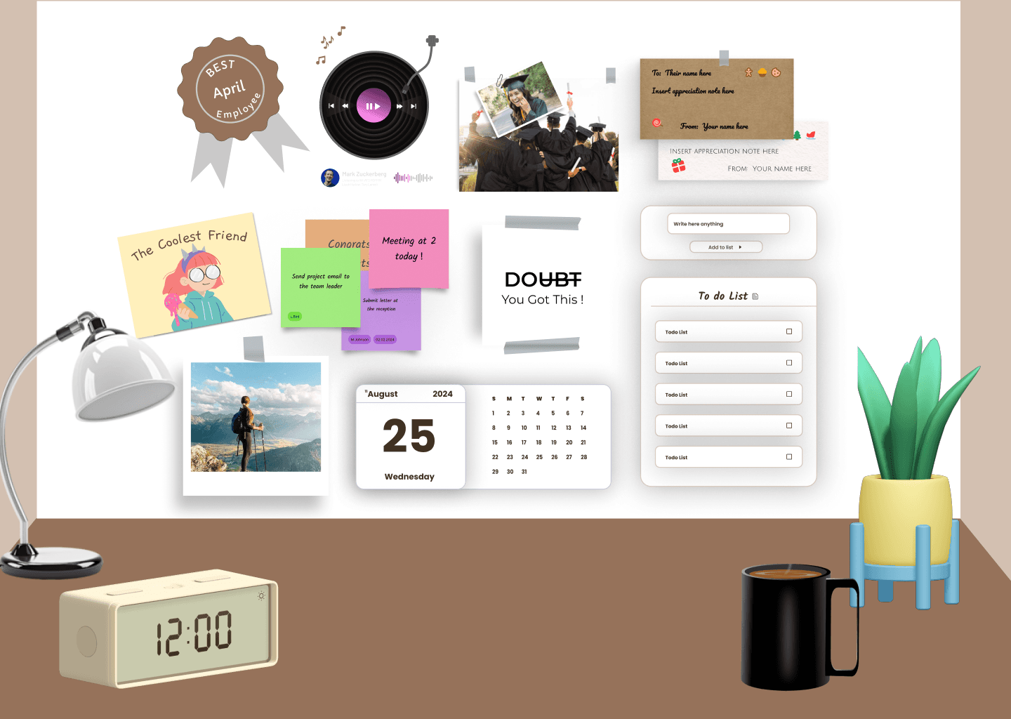 This is our first draft visualization of the Desk — the central feature. It’s designed as a personal space where colleagues can express their personality, interests, and work style. From pet photos to playlists, the desk itself becomes a conversation starter for colleagues